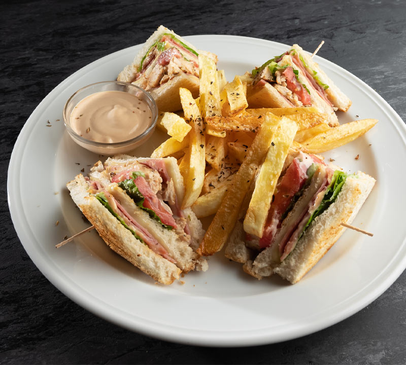8.50€ζαμπόν, τυρί, μπέικον, μπιφτέκι μοσχαρίσιο, τομάτα, μαρούλι, σως, πατάτες